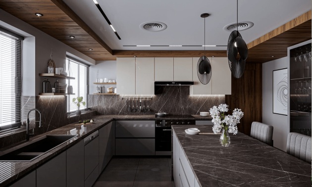 Trần thạch cao dạng chìm đẹp cho phòng bếp nhà ở (Nguồn Internet)